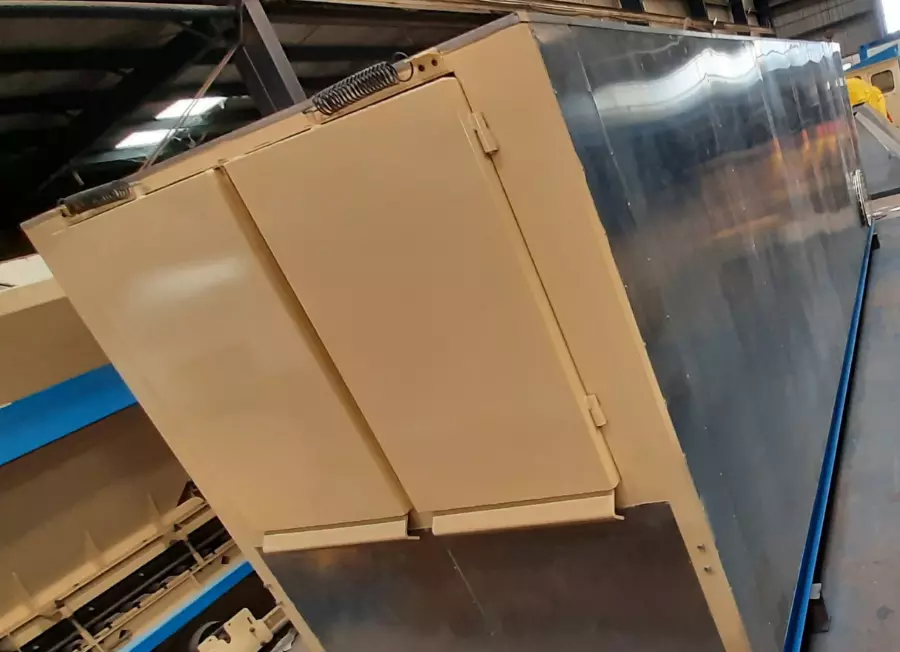 When new drums are loaded, empty ones drop out automatically from the other end. Drum is heated by hot oil coils which are located all around the drum rows and bottom of the decanter. The unit is insulated with thick rock wool and cladded with aluminum sheet.